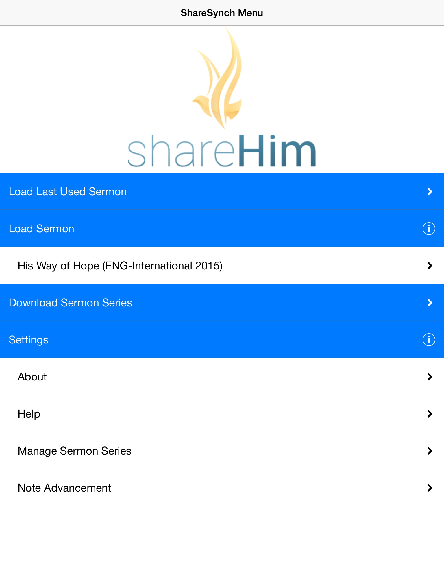 ShareSynch is an iPad and iPhone application that lets users present and edit ShareHim presentations. In ShareSynch, users can download sermon materials, dynamically generate PDF documents of presentations, edit speaker notes in rich text, and swap the slide or speaker note language independently of one another. (Cocoa Touch, Objective-C, SQLite)
