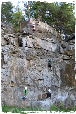With more than 200 horizontal feet of 40-foot to 60-foot climbs, as well as plenty of surrounding bouldering opportunities, the Goliath Wall has been bolted for top-rope use and boasts many climbing routes ranging from 5.6 to 5.10+. The Goliath Wall serves many purposes. In particular, it is a training wall for the outdoor leadership rock climbing and technical rescue rigging classes, as well as for the Hamilton County Cave and Cliff Rescue Team. Of course, it provides plenty of recreational climbing opportunities for students and the community, and it is an important part of the campus Dusk ‘til Dawn Adventure Race.