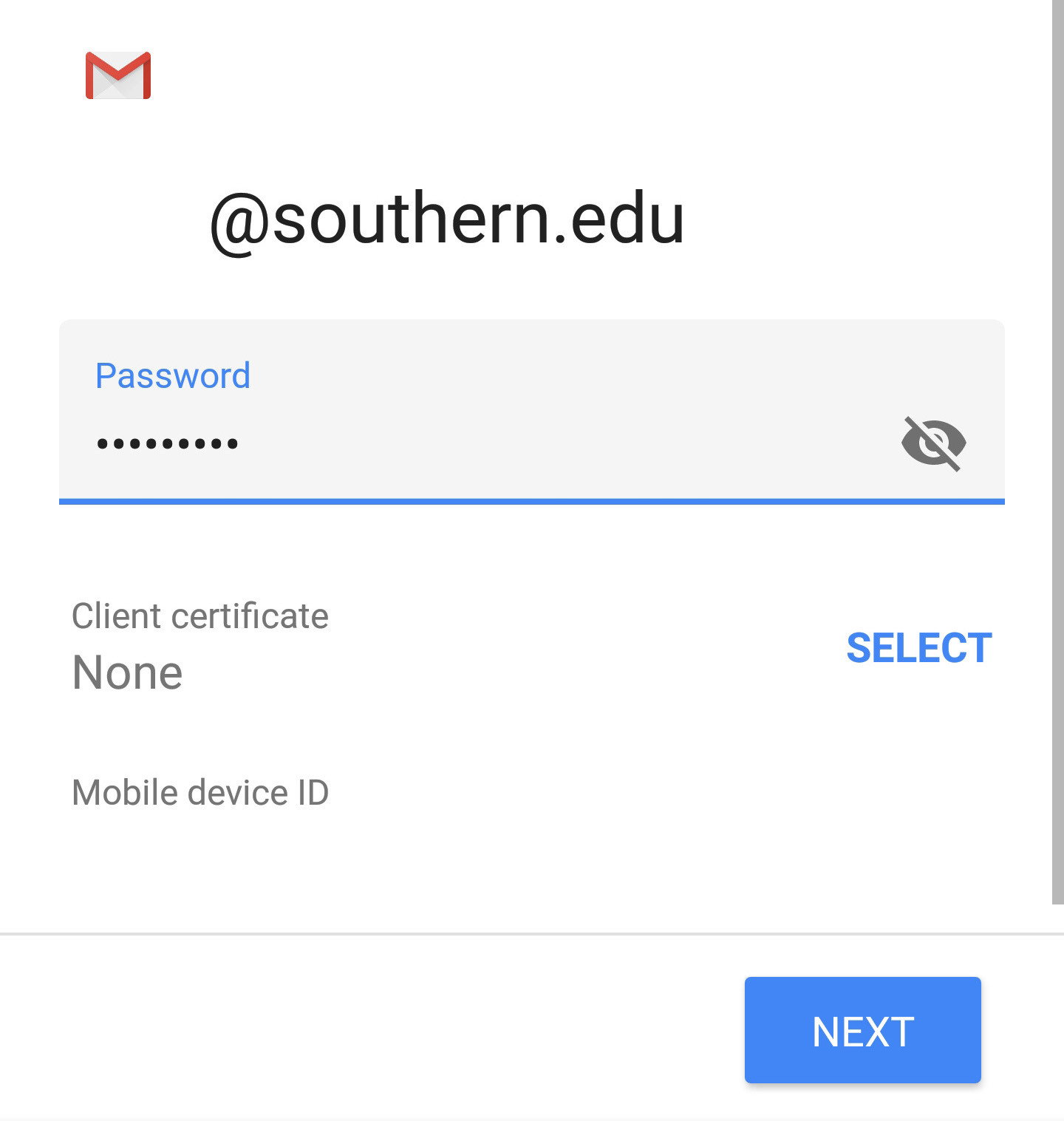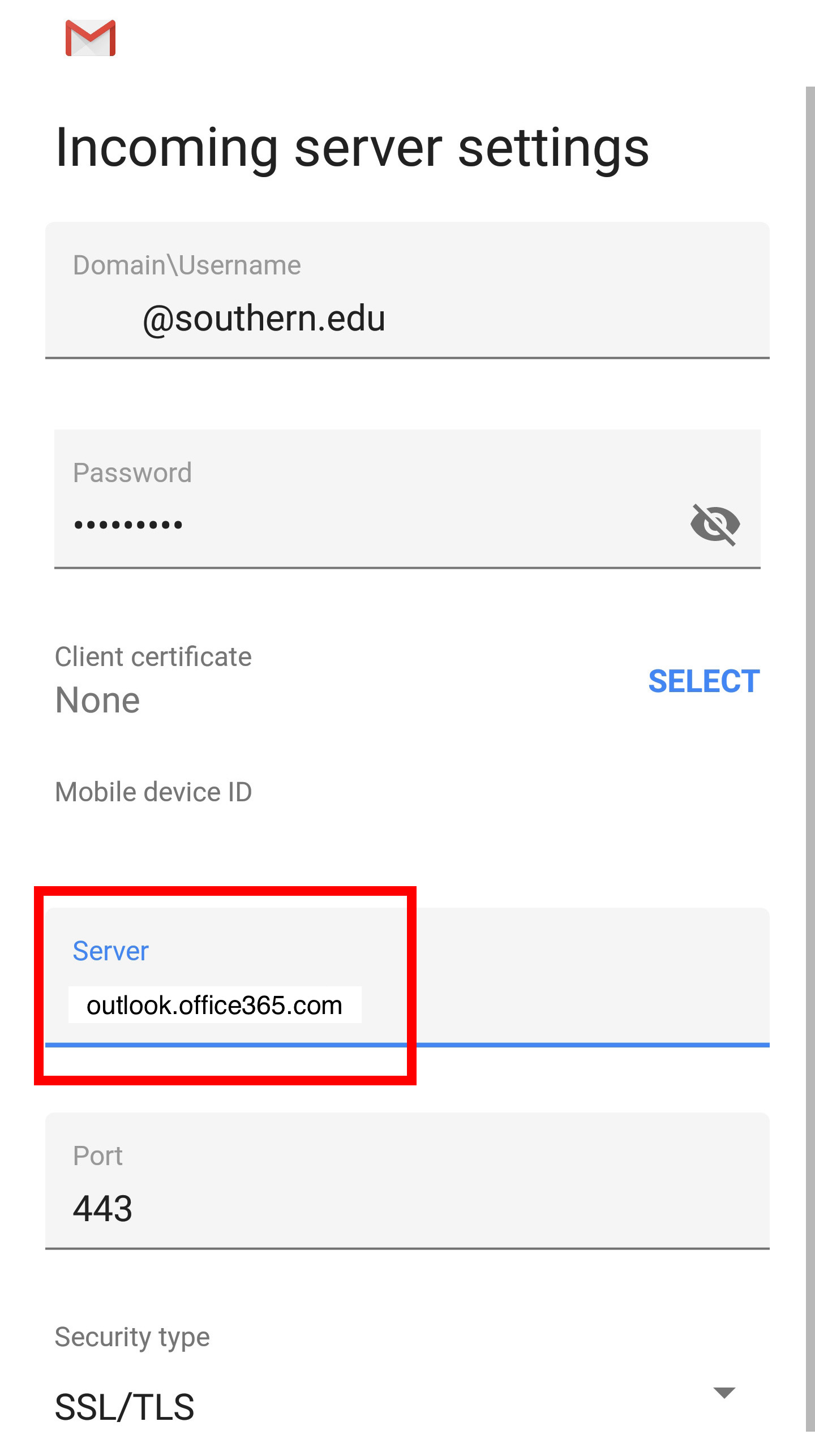 • After a brief loading screen, you may be prompted to accept server requirements from southern in Gmail; accept these and you may now use your Southern email account with Gmail on Android.