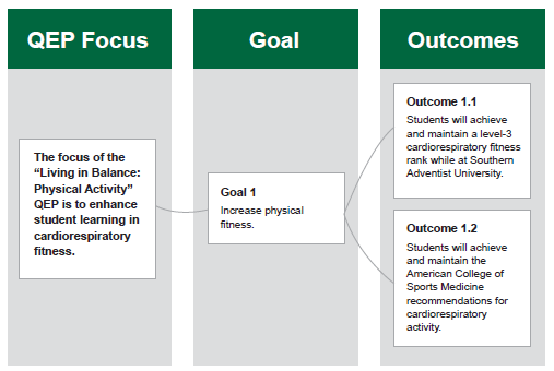 Southern Adventist University has five general education student learning areas: spiritual development, intellectual development, individual and social development, physical development, and discipline-specific competence. With the “Living in Balance: Physical Activity” QEP, Southern Adventist University seeks to strengthen student learning in the general education area of physical development.