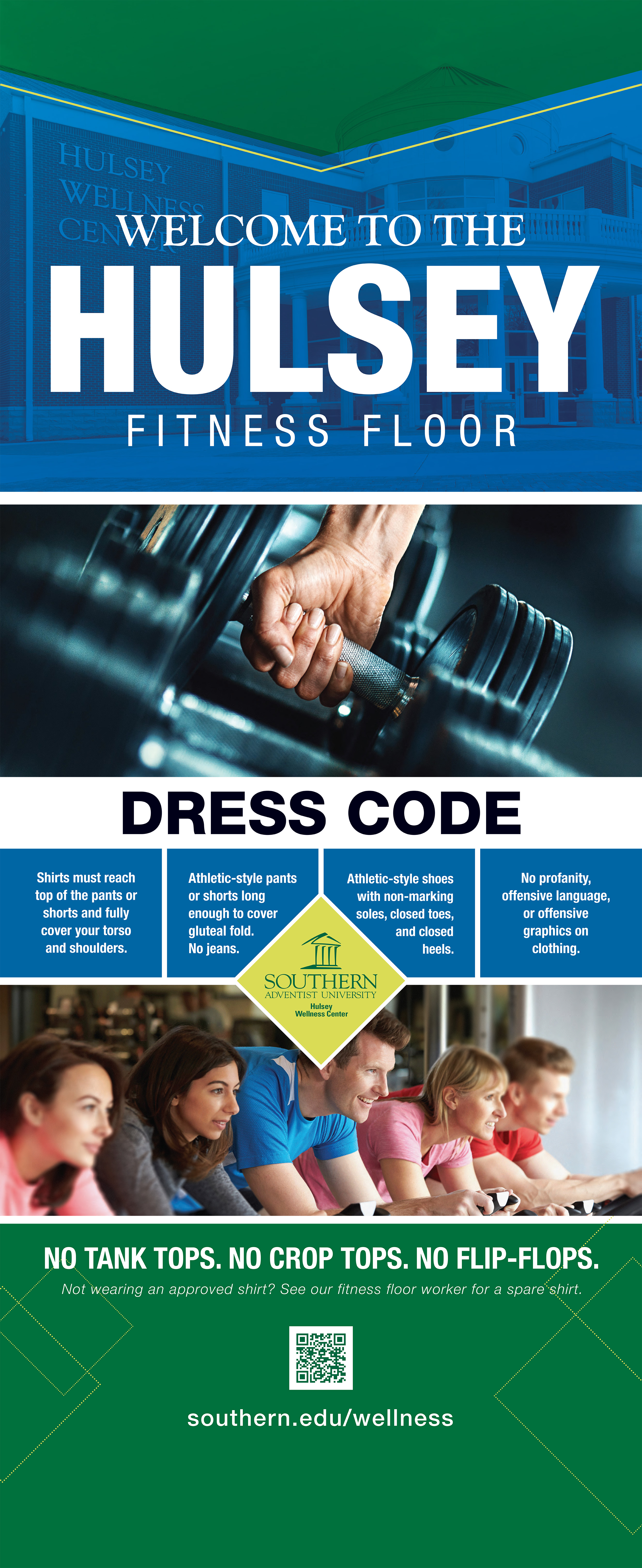 • Modesty of dress should always be considered. Shirts that reach the top of the pants/shorts and fully cover the torso and shoulders are required on the fitness floor and walking track. Pants/Shorts should be long enough to cover the gluteal fold. Denim is not appropriate.  Exceptions to this dress code are allowed in the pool area and basketball courts. Closed-toe athletic non-marking shoes are required. One piece swimsuits are required in the pool areas. (See Dress Code sign for examples)